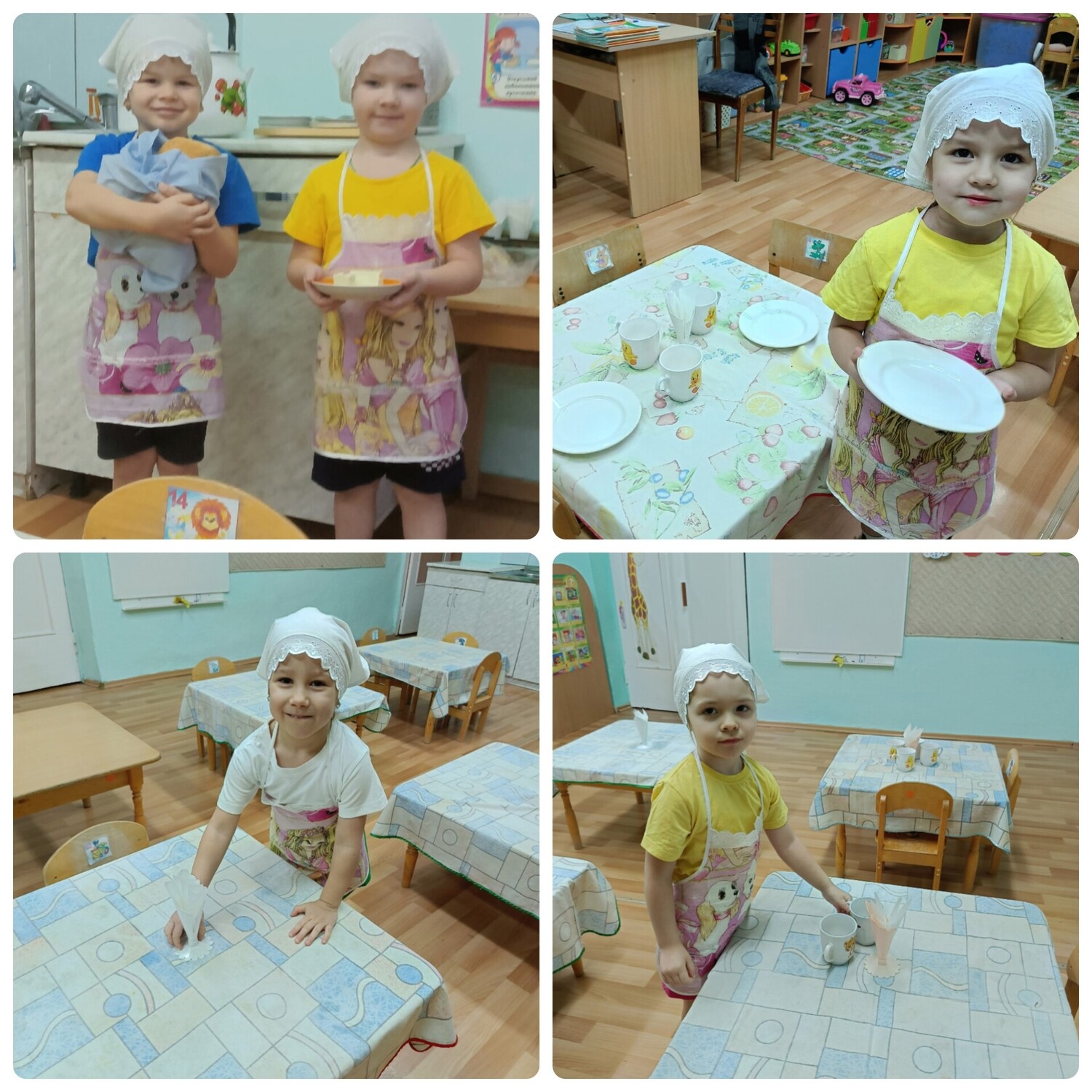 С дошкольного возраста каждый ребенок обязательно должен принимать участие в труде, выполнять несложные обязанности дежурного. Дежурство требует от детей большей самостоятельности, знания о последовательности работы, представлений о ее полном объеме и о требованиях к конечному результату. Поручения — это задания, которые воспитатель эпизодически дает одному или нескольким детям, учитывая их возрастные и индивидуальные особенности. В средней группе корпуса "Сказка" дети продолжают дежурить по столовой. Назначается двое дежурных, которые полностью накрывают на столы: раздают салфетницы, чашки, тарелки, ложки, ставят хлебницы и помогают помощнику воспитателя убирать со столов. Задачей воспитателя является показать ребенку значимость его труда и поддерживать положительную мотивацию на проведение дежурств. Воспитатель учит детей работать в паре, организовывать свою работу и разделять обязанности.