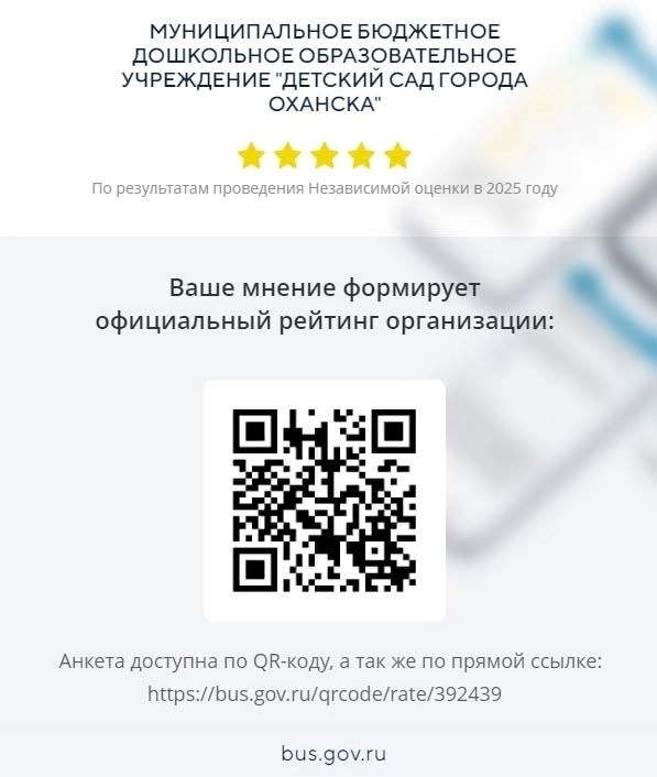 МБДОУ "Детский сад города Оханска" в 2025 году осуществляет независимую оценку качества образования (НОКО). Мы обращаемся к вам с просьбой о содействии и приглашаем пройти анкетирование.