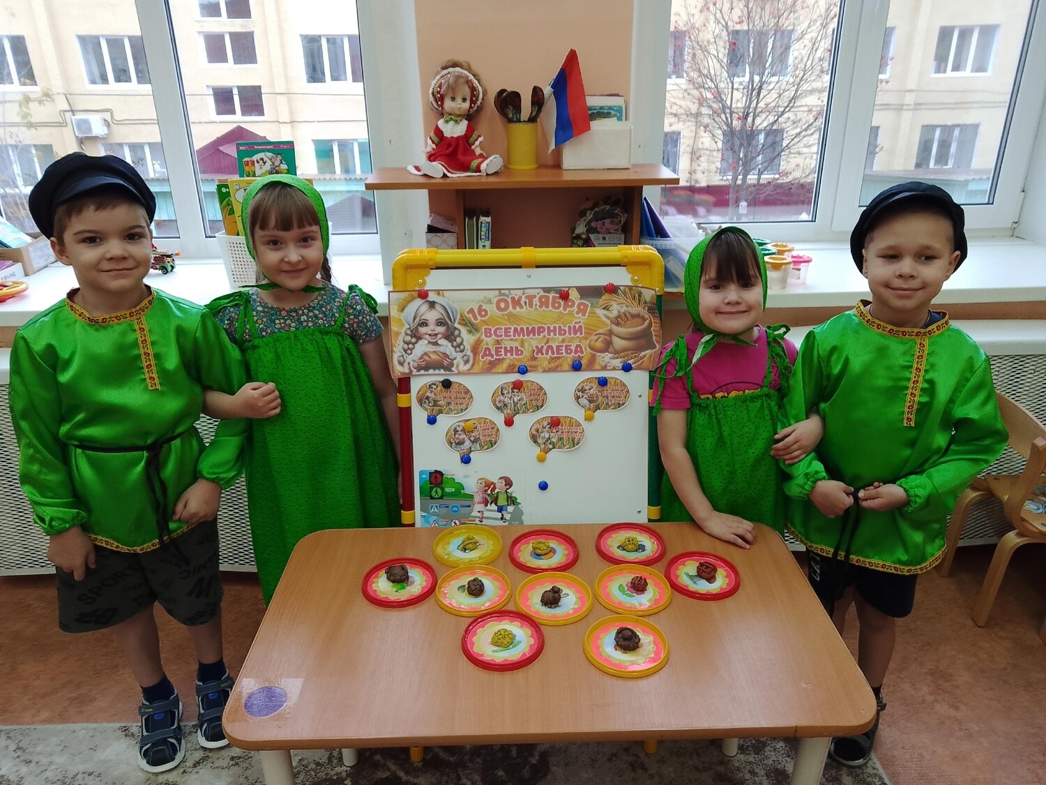В честь Всемирного дня рождения хлеба в старшей группе корпуса "Теремок" прошли увлекательные мероприятия. Воспитатель провёл интересную беседу о хлебе, ознакомив детей с трудом хлеборобов, пекарей и сельскохозяйственной техникой. В книжном уголке была организована подборка литературных произведений и русских народных сказок о хлебе. Ребята узнали о значении народных пословиц о хлебе, отгадывали загадки на эту тему. Вместе они "пекли" каравай к дню рождения хлеба. Завершился день весёлым развлечением со сказочными героями из деревни Хохотушкино. Ребята пели песни, играли на музыкальных инструментах, водили хороводы и участвовали в весёлых играх.